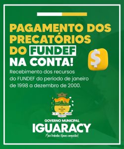 Prefeitura de Iguaracy, administrada pelo prefeito Zeinha Torres, efetuou na última sexta-feira (28), o pagamento de R$ 699.814,49 (seiscentos e noventa e nove mil, oitocentos e quatorze reais e quarenta e nove centavos) dos precatórios do Fundo de Manutenção e Desenvolvimento do Ensino Fundamental e de Valorização do Magistério, o antigo FUNDEF, à 189 professores.