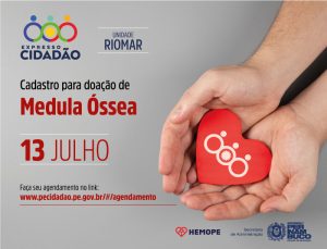 A Secretaria de Administração (SAD), por meio do Programa Expresso Cidadão, firmou parceria com a Fundação de Hematologia e Hemoterapia de Pernambuco (Hemope) para aumentar o quantitativo de pessoas cadastradas como doadoras voluntárias de medula óssea. Para isso, a instituição estará na unidade do Expresso Cidadão Pina, situada no Shopping Rio Mar, no dia 13 de julho, realizando o cadastro de doadores. Para participar, é necessário realizar o agendamento no endereço