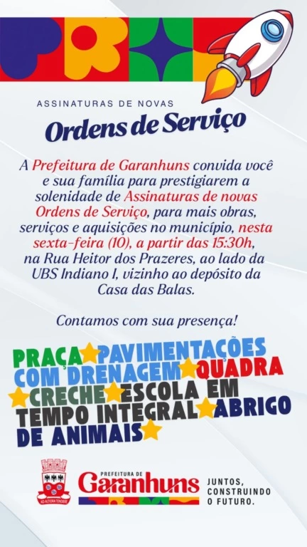 Abertura dos Jogos Escolares – Acontece nesta sexta-feira (10), às 16 horas, a Cerimônia de Abertura dos 29º Jogos Escolares Municipais 2026 da cidade de Custódia, na Escola Municipal Ernesto Queiroz, uma realização da Prefeitura Municipal, através da Secretaria de Educação e da Diretoria de Esportes. “Será um momento especial de celebração, união e valorização do esporte escolar, reunindo nossos estudantes em uma grande festa de talento, dedicação e espírito esportivo”, disse o prefeito Manoel Messias.
