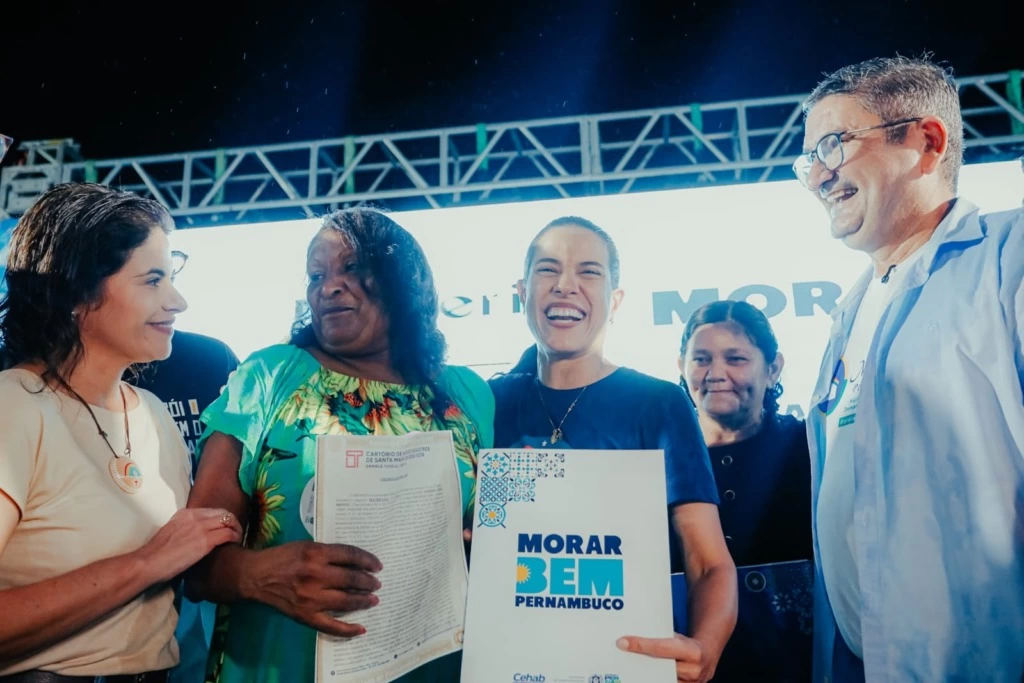 O município de Santa Maria da Boa Vista, no Sertão do São Francisco, recebeu, nesta quarta-feira (8), uma das maiores ações de regularização fundiária da sua história, com a entrega de 691 títulos de propriedade realizada pela governadora Raquel Lyra a famílias do bairro da Boa Vista. A iniciativa representa um passo importante do Governo de Pernambuco na garantia do direito à moradia e na promoção da dignidade para a população. Com investimento superior a R$ 3 milhões, a ação reúne entrega de documentação definitiva, segurança jurídica e melhorias habitacionais. Três ônibus escolares também foram entregues para a gestão municipal. A governadora ainda anunciou mais R$ 4 milhões para pavimentação e passagem molhada em Santa Maria da Boa Vista, além de R$ 2,1 milhões para pavimentação de ruas em Cabrobó. A vice-governadora Priscila Krause também participou da cerimônia.