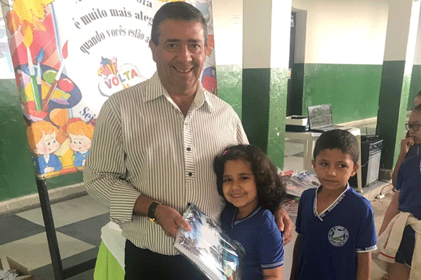Entregou – O prefeito de Iguaracy, Zeinha Torres, acompanhado da primeira dama, Mary Delanea, a Secretária Municipal de Educação, Rita de Cássia, a diretora da Escoal Diomedes Lopes Ana Paula, entregaram ontem, os Kits Escolar, para todo alunado daquela unidade de ensino. Segundo o prefeito Zeinha Torres, todos os alunos da Rede Pública Municipal, irão receber o kit com material escolar. “A iniciativa tem como objetivo possibilitar igualdade de aprendizado e auxiliar os pais que terão diminuição nas despesas com a educação dos filhos”, disse o prefeito.