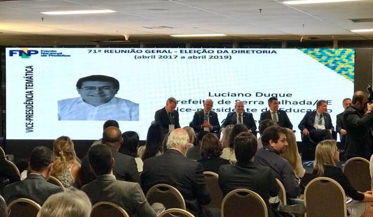 Eleito – O prefeito de Serra Talhada, Luciano Duque foi eleito para a nova diretoria da Frente Nacional de Prefeitos – FNP, ontem (26), na 71ª Reunião Geral, que aconteceu ontem (26) no IV Encontro dos Municípios com o Desenvolvimento Sustentável (IV EMDS). Duque será o Vice-Presidência de Educação Ambiental, para o biênio 2017/2019. “Foi mais um momento marcante em minha trajetória, principalmente por Serra Talhada ter se tornado uma cidade respeitada e conhecida em diversos lugares do país, e isso não é por acaso, é fruto de um trabalho sério e que tem compromisso com o desenvolvimento e com uma melhor qualidade de vida para a população”, disse Duque.