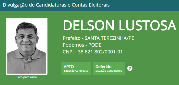 Deferida 1 – O candidato a prefeito de Santa Terezinha, no Sertão do Alto Pajeú, Delson Lustosa (Podemos), teve publicado ontem (21) pela Justiça Eleitoral, o deferimento de sau candidata a prefeito. Houve uma grande comemoração na cidade, dos aliados de Delson, com carreata pelas ruas da cidade.