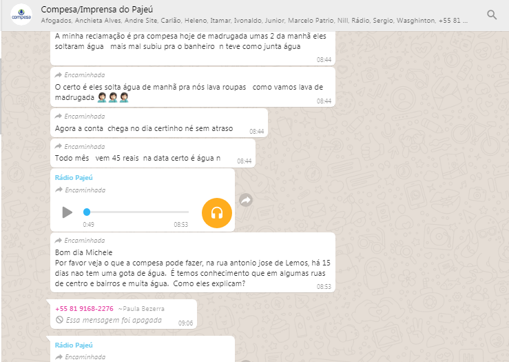 Basta lê acima as reclamações do grupo de WhatsApp da COMPESA/Imprensa do Pajeú.