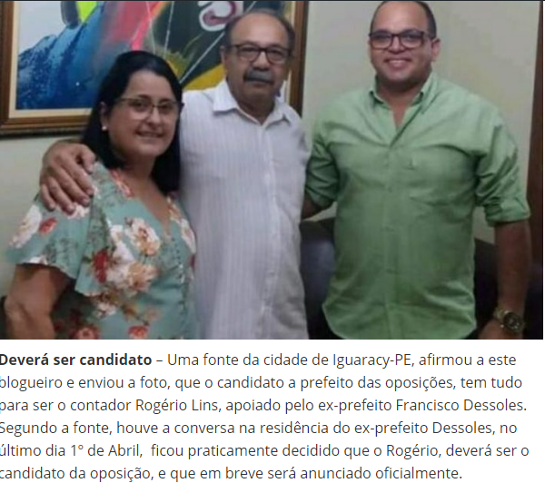 PSD em Iguaracy – Esse ano o PSD montou chapa proporcional na cidade de Iguaracy-PE, com apoio à reeleição do prefeito Zeinha Torres. Maria Advana, candidata à Vereadora, recebeu o apoio de Francisco Antônio Souza Papaléo, Superintendente Regional da Funasa, com atuação na fazenda Humaitá/Duas Barras no município. Maria Adivana é de Jabitacá, distrito de Iguaracy , aonde teve uma atuação bastante destacada como Conselheira Tutelar, sendo uma das apostas do PSD mulher nas próximas eleições. A convenção acontecerá no próximo sábado em conjunto com a do PSB.