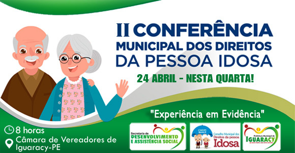 Custódia – Acontece na próxima sexta-feira (26), a II Conferência Municipal dos Direitos da Pessoa Idosa, através da Secretária de Assistência Social e Cidadania, que terá como tema: Os Desafios de Envelhecer no Século XXI e o papel das políticas públicas. Será das 08 às 14 horas, no Salão Paroquial São Miguel Arcanjo.