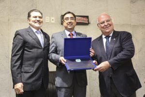 Celebrou – O aniversário de 47 anos da Companhia Pernambucana de Saneamento (Compesa) foi comemorado, nesta terça (11), em uma Reunião Solene na Assembleia Legislativa de Pernambuco, a partir de uma iniciativa do deputado Zé Maurício (PP). Criada com a missão de levar água e esgotamento sanitário aos pernambucanos, a empresa se constitui numa sociedade anônima de economia mista vinculada ao Governo do Estado. O presidente da Compesa, Roberto Tavares recebeu uma placa comemorativa da Alepe. Ele agradeceu a homenagem da Assembleia, lembrando que a companhia é um patrimônio do povo pernambucano.”Ultimamente temos investido muito para oferecer à população um serviço cada vez melhor”, destacou.